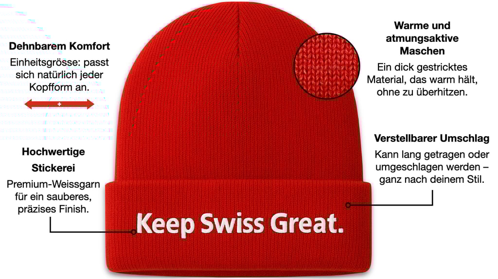 Das ist nicht einfach eine Mütze – es ist ein kleines Symbol. Ich trage die Schweiz auf dem Kopf, und ich liebe es.